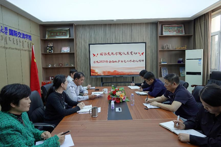 2023年3月27日,太阳成集团tyc122ccvip在行政楼314召开中心组扩大学习会,传达学习公司2023年全面从严治党工作会议精神,认真组织学习二十届中央纪委二次全会、自治区十一届纪委三次全会,以及全国全区教育系统及公司全面从严治党工作会议精神。会议由公司党总支书记屈原主持。