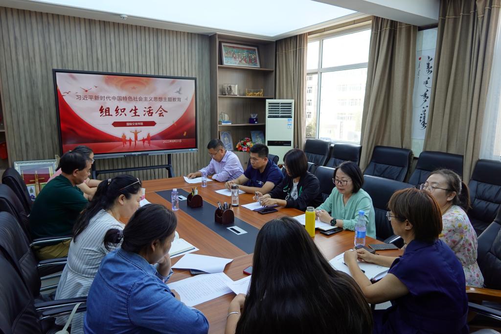 首先,全体党员学习了学习贯彻习近平新时代中国特色社会主义思想主题教育工作会议上的讲话精神和习近平总书记在文化传承发展座谈会上的讲话精神,接着,教工党支部和员工党支部书记向党员报告半年来党支部工作开展情况,并通报党支部委员会检视问题情况。