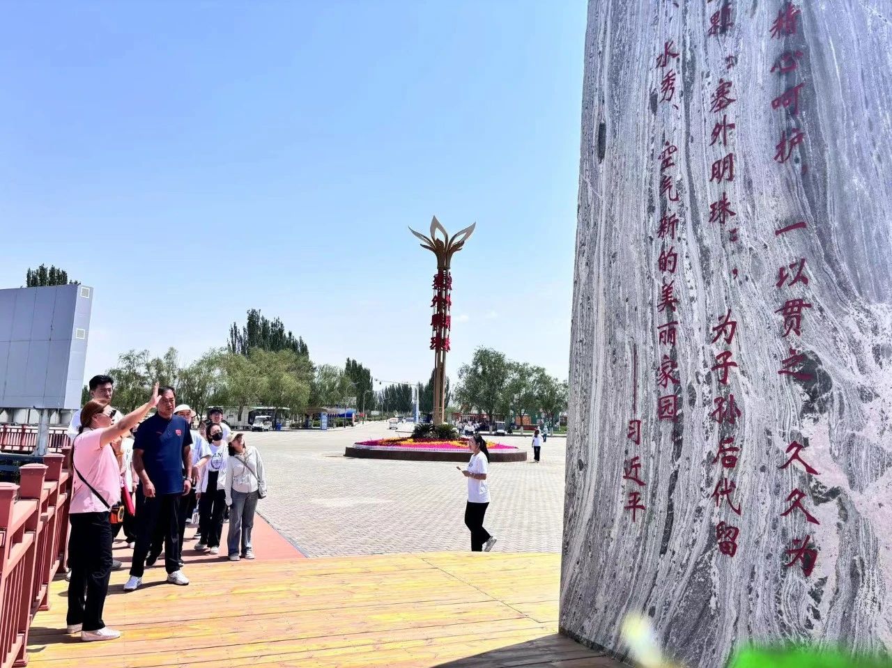 公司党总支一行人首先来到了乌梁素海,这片被誉为“塞上明珠”的湖泊。我们沿着总书记曾经走过的道路,一路前行,感受着这片土地上的历史变迁和时代发展的脉搏。在乌梁素海边,我们驻足凝视,仿佛能听到总书记那铿锵有力的话语,感受到他对这片土地的深情厚意和对人民的殷切期望。