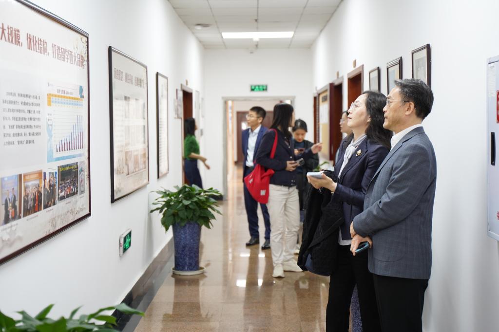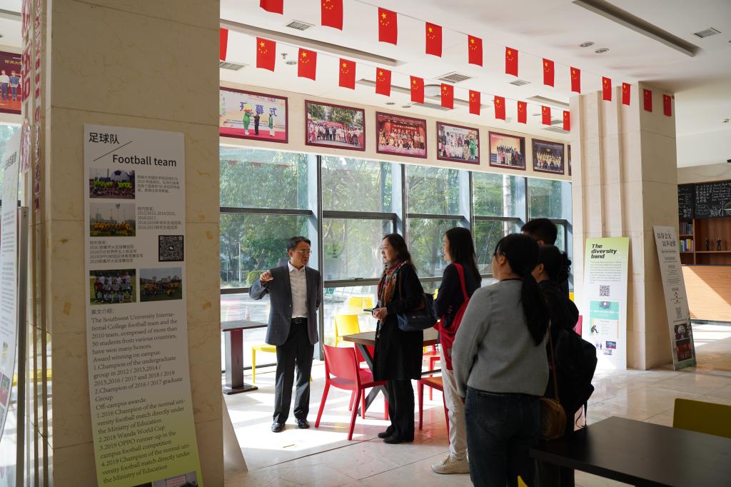 武海燕经理一行两人,首先实地参观了西南大学国际公司“汉语角”展厅、职工活动室、职工成果展、职工教室、文化体验室、HSK考点、党建办公室等,深入了解该公司建设与发展情况。然后与西南大学国际公司党委书记刘猛以及分管职工教学、管理、招生工作的负责人进行座谈。