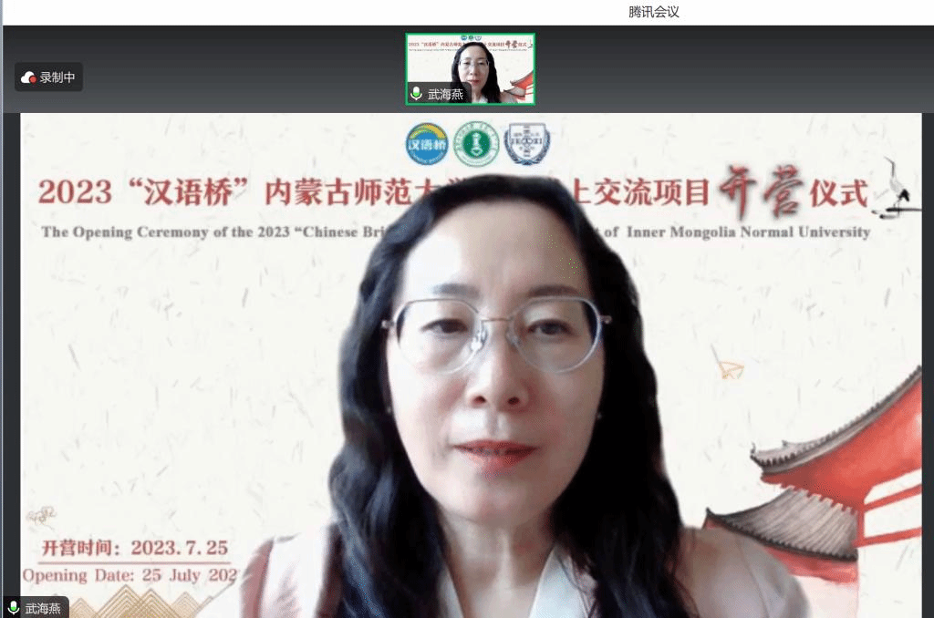 随后,太阳成集团tyc122ccvip经理武海燕发表了讲话,她对参与该项目的学员表示了热烈地欢迎,向海外学员介绍了太阳成集团122ccvip职工培养、太阳成集团tyc122ccvip开展汉语桥线上团组等情况。希望通过这个项目,使学员能够更好地了解中国文化,提高汉语水平,增强跨文化交际能力。