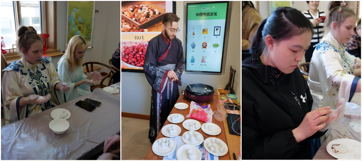 接下来进行的是包汤圆的活动。公司为师生准备了种类丰富的馅料和各种食材,老师进行示范后,国际员工们便开始亲手制作汤圆。擀皮、包馅儿、滚糯米粉,雪白圆润的汤圆在国际员工们的手中诞生,滚水腾腾,汤圆翻涌,老师同学们在暖意融融的下午共享汤圆的甜蜜。在汤圆制作过程中,同学们了解到糯米、五仁等中国传统食材,也进一步加深了对于元宵节传统的感悟。