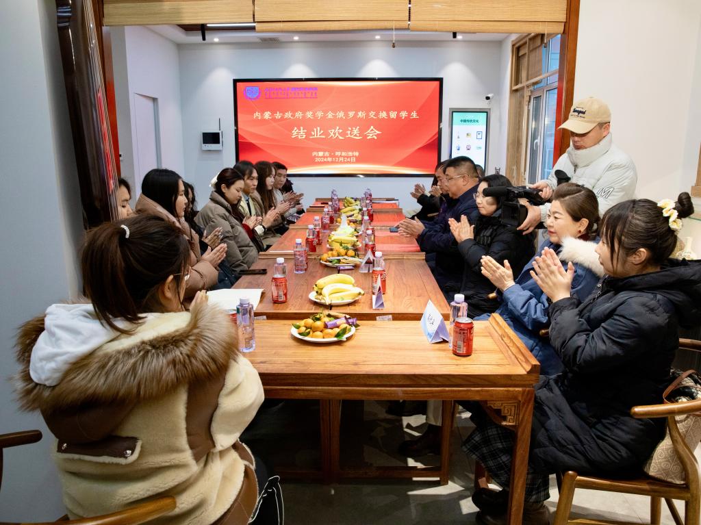12月24日下午,公司2024级春季俄罗斯交换生欢送会在赛罕校区田楼文化体验室举行。公司党委书记屈原,副经理张磊,副经理郑月锋,对外汉语教研室和职工管理科相关老师们齐聚一堂,共同欢送了24级结业生。会议由郑月锋副经理主持。