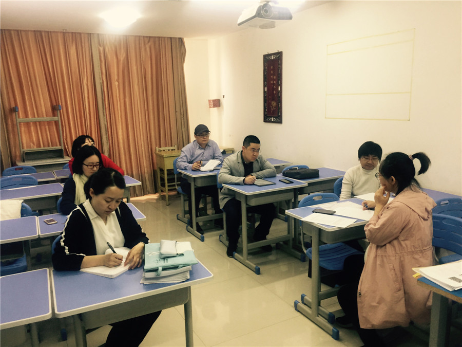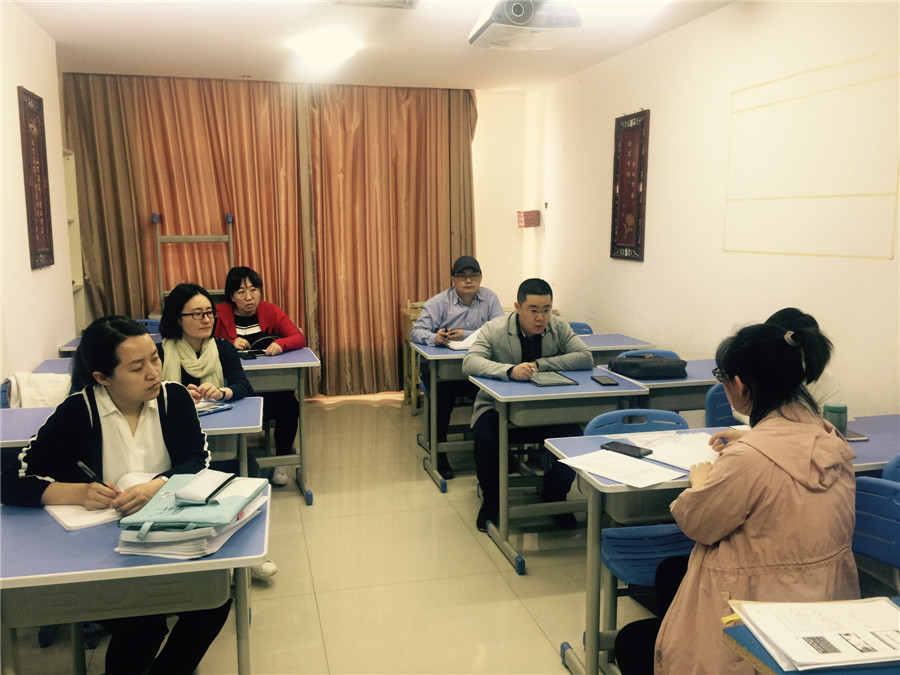2019年4月25日下午,太阳成集团tyc122ccvip英语教研室全体英语教师进行着例行的教学研讨会,公司教学副经理张磊老师也参加了今天的教研会。
