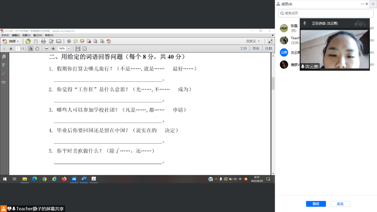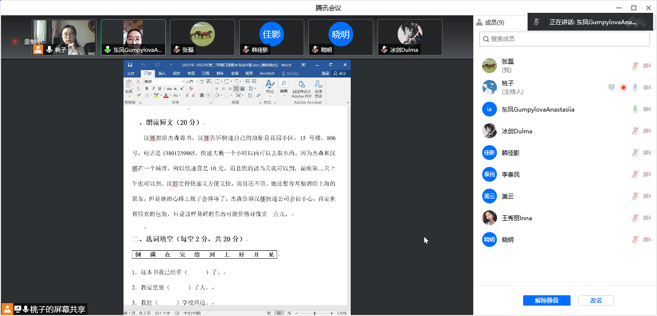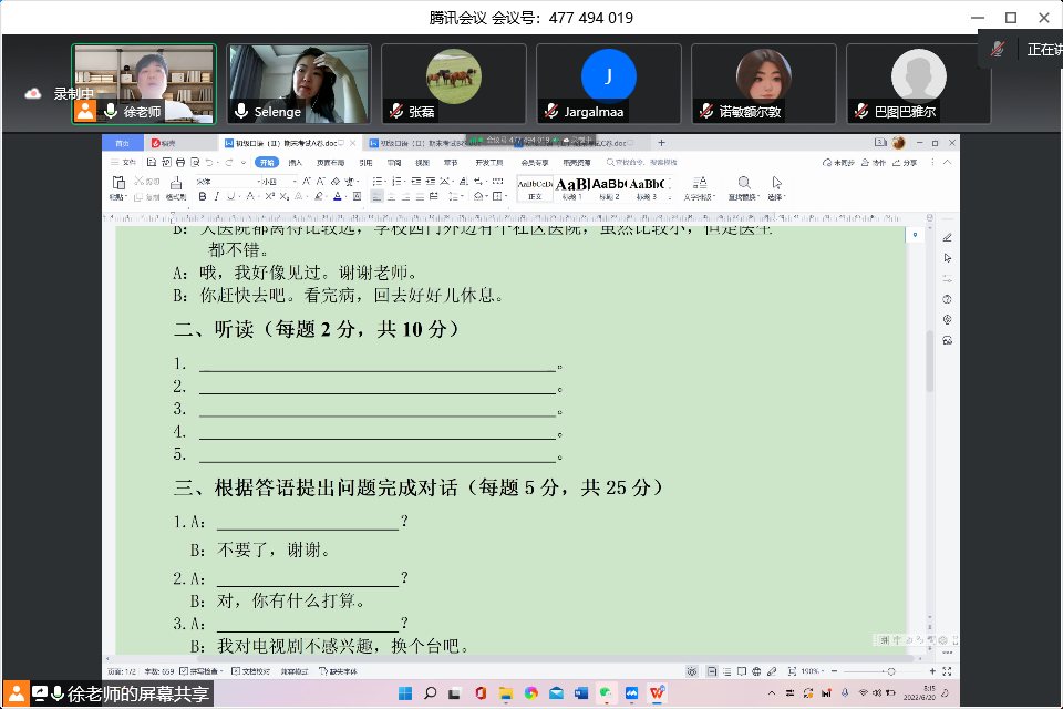 6月20日,公司本学期期末考试拉开序幕。当日公司共开设15门课程的考试,均顺利开考。考试平台包括腾讯会议、学习通、慕课平台等。考试形式包括视频连线、在线提交录音、电子试卷等。总体时间安排合理,教师监考方式有效,链接公布及时,巡考全覆盖。