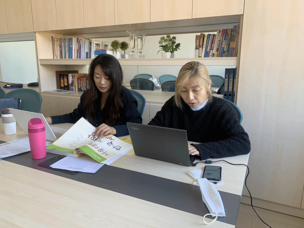 韩国语教研室在9月和10月各开展了一次核心课程共同备课活动。第一次共同备课活动是9月23日在韩国语办公室进行的,参与教师有马文黎和乌日勒;第二次是10月17日在腾讯会议上进行的,参与教师有马文黎、乌日勒和外教金泽洙。共同备课的内容主要是统一了教学初期韩国语语音的教学顺序,共同制作了语音部分的ppt,以及对韩文发音变化部分进行了教学分工,并规定了每次上课后在共同备课群中上传教学进度。