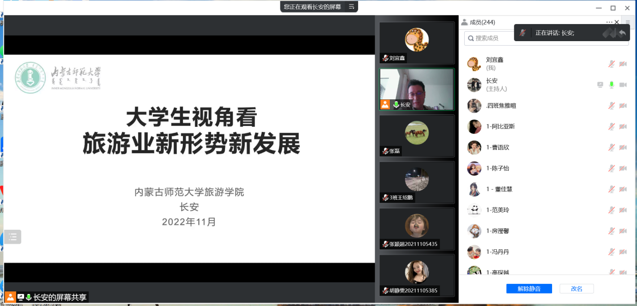 为丰富返乡员工学习生活,让员工明确学业发展方向,鼓励员工返乡后继续努力学习,进一步保障线上教学质量,12月1日下午,公司邀请旅游公司经理、博士生导师长安教授为公司旅游管理专业师生带来《在校老员工视角谈旅游业新形势新背景》讲座。公司经理武海燕、副经理张磊、相关教师以及2021、2022级ISEC旅游管理专业全体员工参加了本次讲座,讲座由张磊副经理主持。