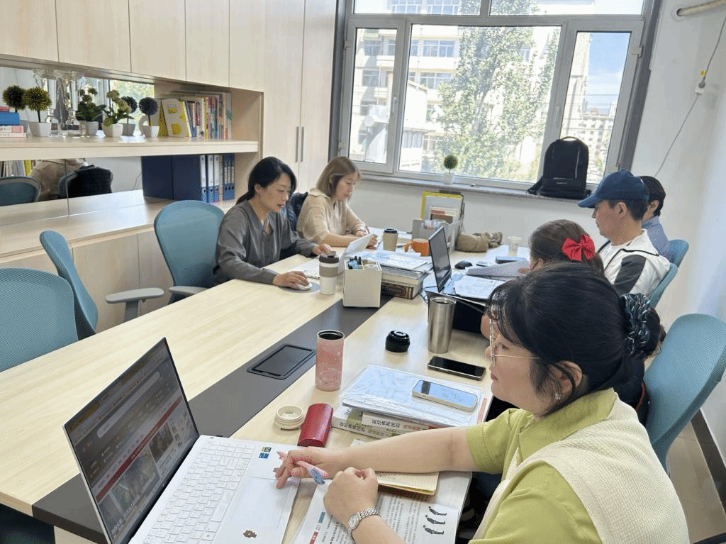 韩国语教研室本学期第三次教学研讨会于2023年6月8日上午在韩国语教研室进行,与会教师为马文黎、乌日勒、哈斯、贾扬帆,外教朴贞淑和金泽洙。