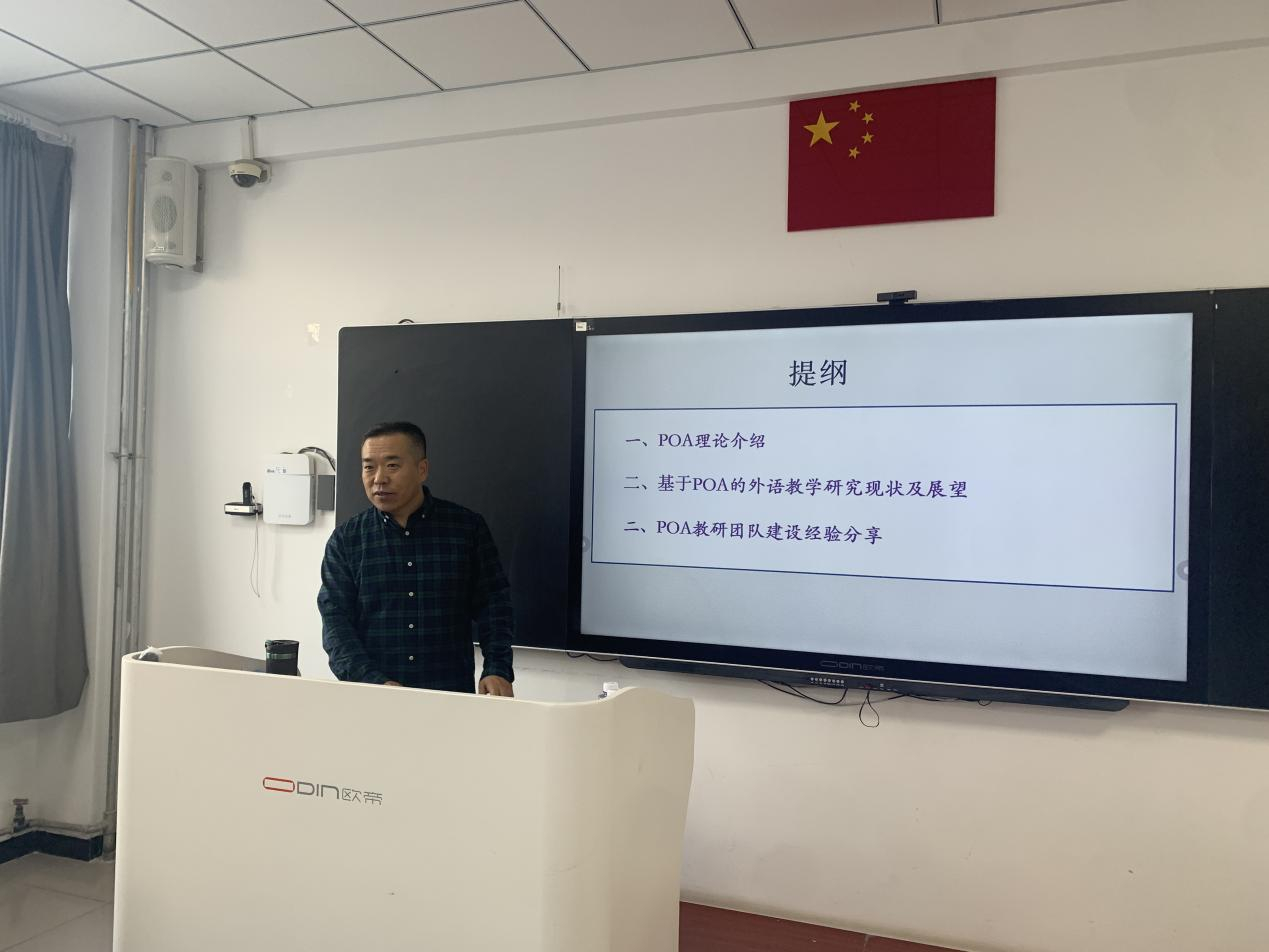讲座开始时,吴教授首先详细介绍了产出导向法(POA)的核心理念及其在教学实践中的应用。他指出,POA是一种以员工为中心的教学方法,它强调通过‘驱动’、‘促成’和‘评价’这三个关键环节来促进员工的学习。这种方法能够有效激发员工的主动性和创造性,从而达到提高语言能力的目的。