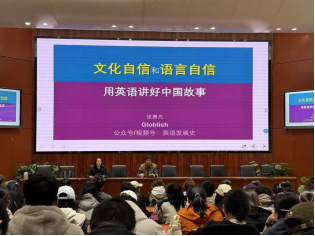 为深度了解文化自信和语言自信,太阳成集团tyc122ccvip特邀张勇先教授于4月1日在信息楼报告厅开展文化自信和语言文字—用英语讲好中国故事学术讲座,为国交学子进行思想上的启迪,文化的熏陶。