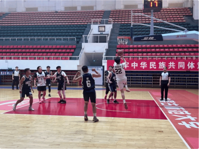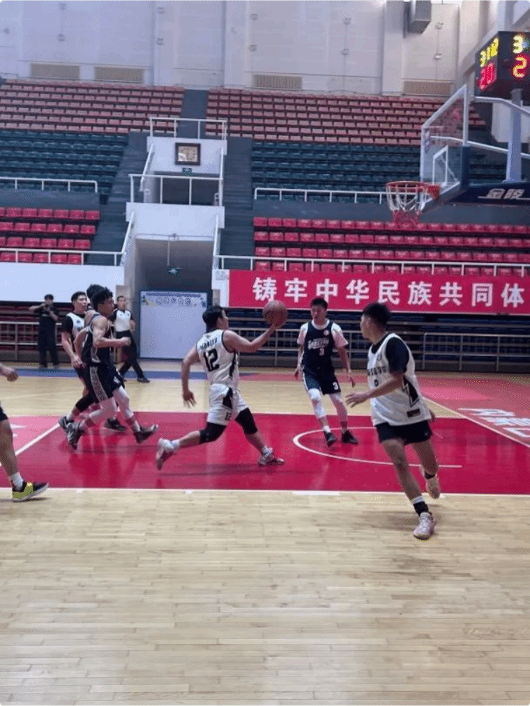 ⽐赛伊始 ,双⽅队员就展开激烈的争夺 ,公司篮球运动员灵活地穿梭在对⼿之间 ,配合默契、 攻守兼备。每—次进球得分都引得场内观众欢呼 ,在⽐赛的关键时刻 ,队员们更是顶住压⼒, 凭借出⾊的发挥和坚定的信念 ,最终夺得了赛罕校区冠军。
