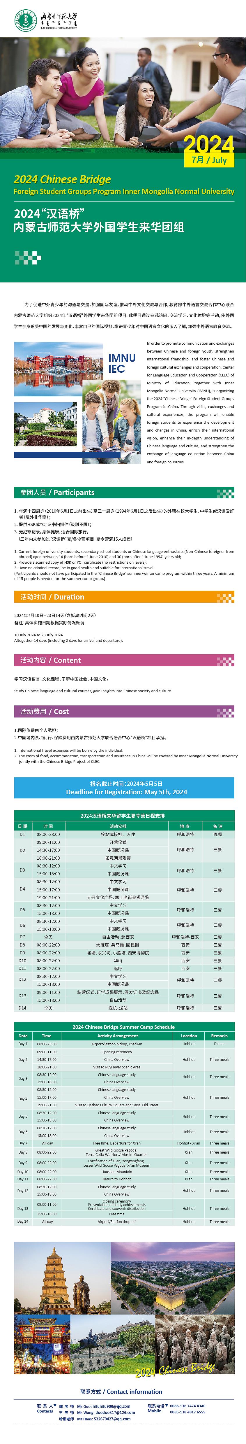 2024 Chinese Bridge Foreign Student Groups Program Inner Mongolia Normal University