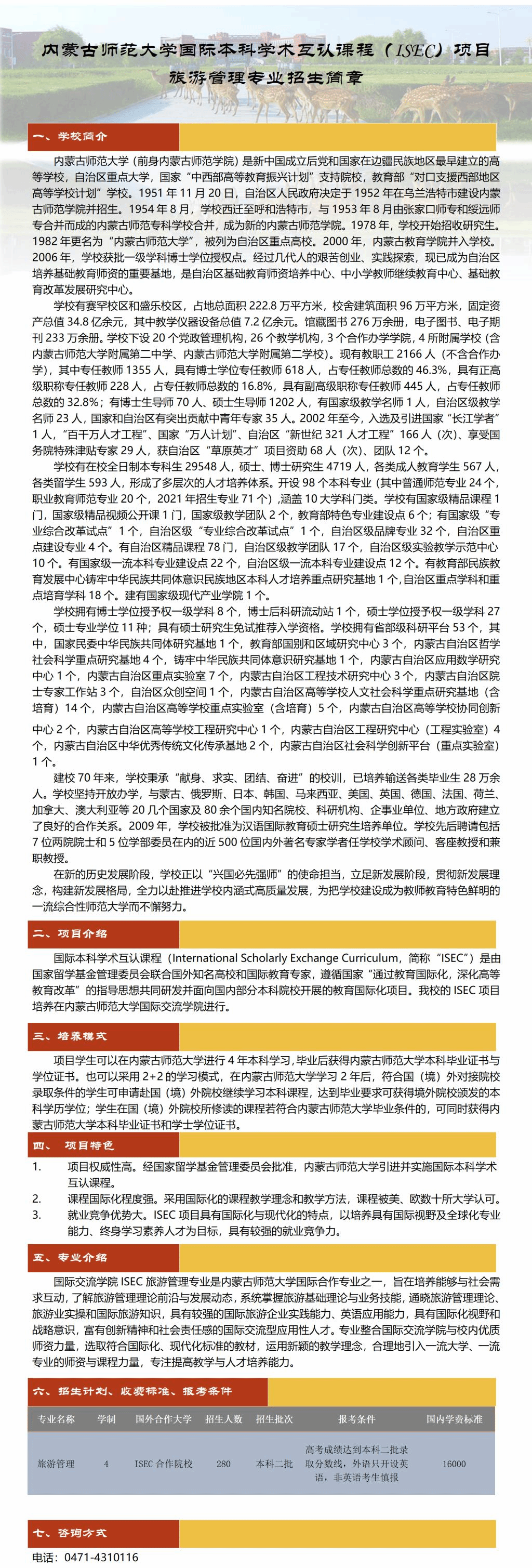 太阳成集团122ccvip国际本科学术互认课程(ISEC)项目旅游管理专业招生简章